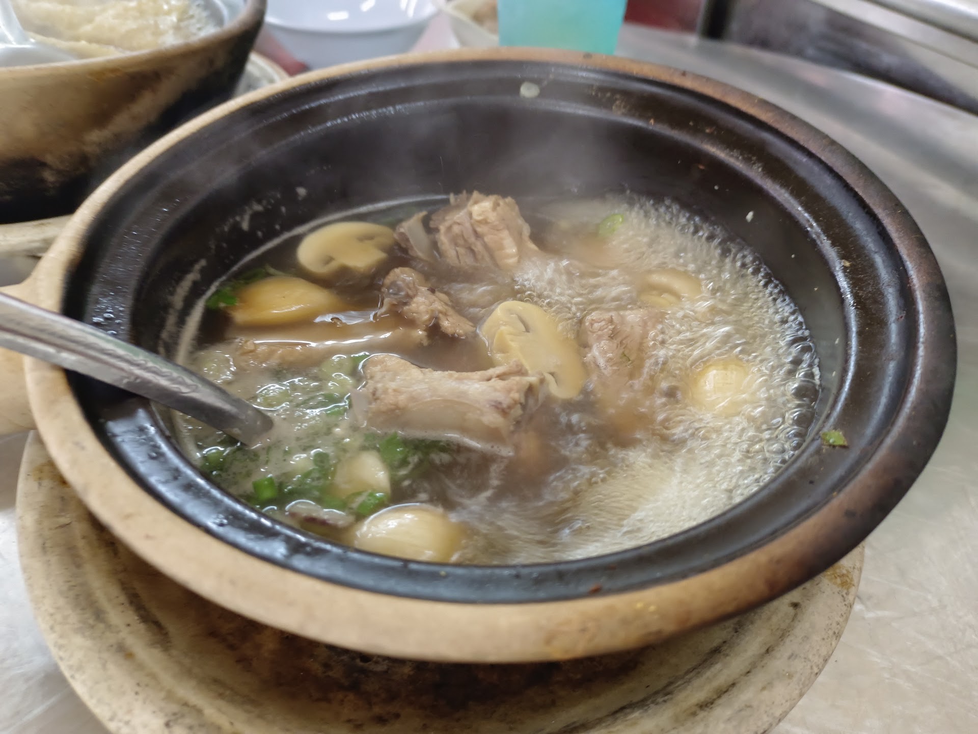 Now... The main thing... BKT! It was cooked in a charcoal fire and the looks of it already made me taste better! You can add ingredient like liver, pork belly, button mushroom or enoki etc... Again, u can order from the lady. The soup was more of the herbal kind, with a slight taste of liquorice (hope I didn't get that wrong). And on the claypot, it came out pipping hot and so yummy! The pork ribs were unlike most I ate in spore that's tough and stick on your teeth. This is easy to bite off and has a nice porky taste to it. I asked for a soup refill and it came out in a little pan that filled up almost my entire claypot again. Very impressive!