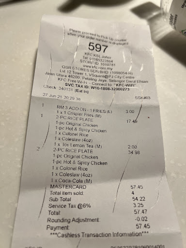 When I finally went to the cashier, he was slouching, lazy, and incredibly rude. Zero effort, zero basic manners. I told him the kiosk didn’t register my RM44+ order, and asked if he could help me key it in manually. He messed it up, missed some drinks, and when I corrected him, the total came out to RM55+ for the EXACT same order. Makes no sense.