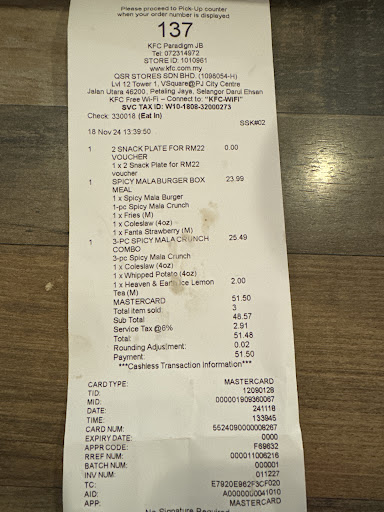KFC suppose to be a fast food chain, not a goddamn fine dining or a night market whereby everyone had to gather at the counter just to ask where is the food at.