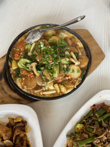 we had pork, veg and tofu hot plate. we added petai for the veg and it was a generous portion with lots of ikan bilis. the tofu also had veg like snow pea and corn and cai xin.