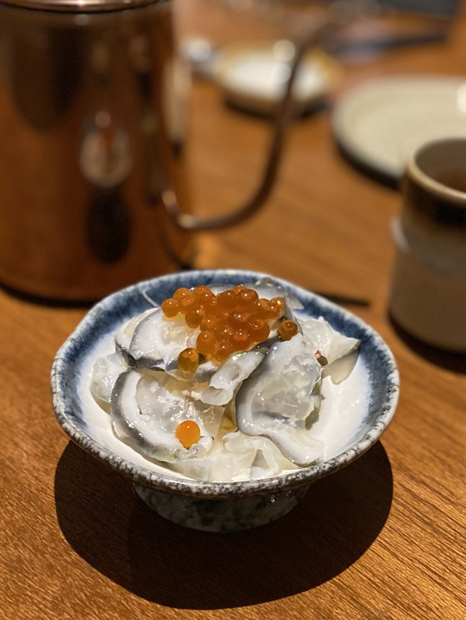 Appetizers 'Hizunamasu' Marinated Salmon Cartilage : Marinated in rice vinegar, a little tang, right amount of saltiness, no need for soy sauce. Ask for a small side of freshly grated wasabi to complete the dish. Perfect appetizer to start the meal. Chewy mouthfeel, like jellyfish but with a little extra crunch.