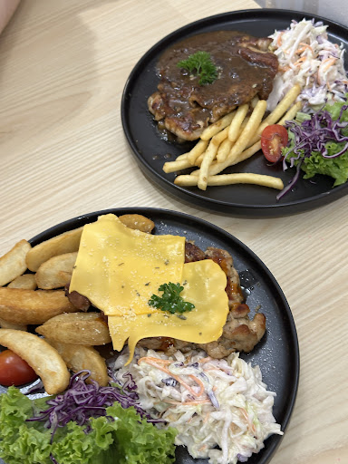 This cafe is like a hidden gem among (so many) cafes around Mt Austin. If it wasn't due to personal recommendation, I won't be able to go have a meal at this cafe because literally you are spoiled for choices of foods around this vicinity. The chops are reasonably priced and what's special is the whole portion of the chicken chop plate with own selection of side dishes. The black pepper chicken chop is grilled with thick black pepper gravy. The tenderness of the meat is just nice, juicy and aromatic. The crispy cheesy chicken chop on the other hand is a bit "jelak" because the chicken is deep fried and on top of that, it is layered with cheese and mayonnaise sauces. So the taste is overwhelmingly rich. Nonetheless, definitely will come back to try...