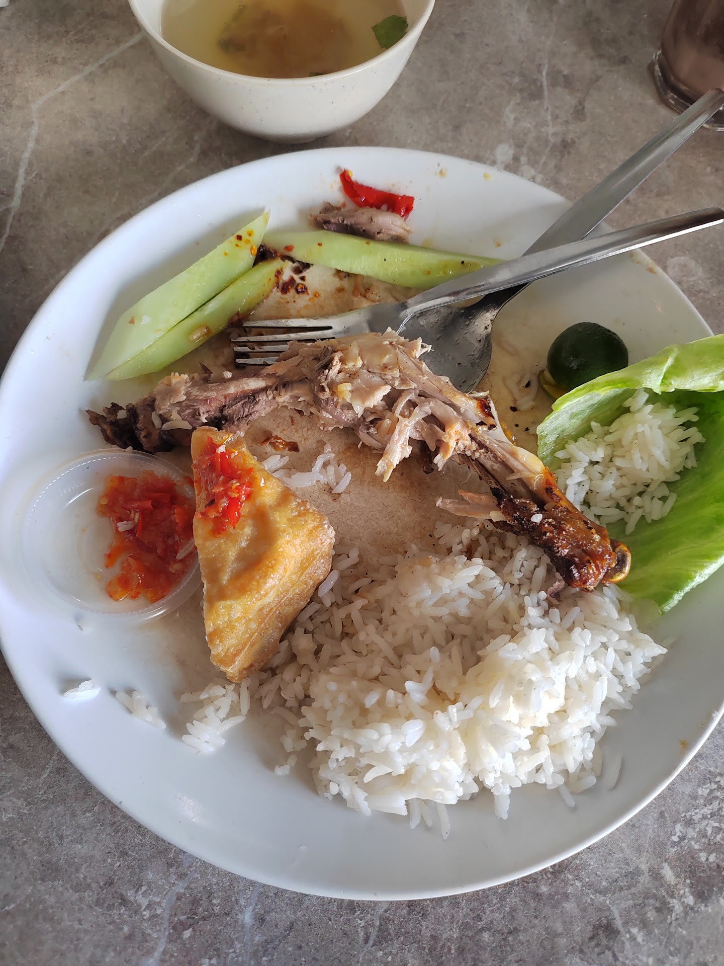 Food arrived 40 minutes later with uncooked fried chicken. Told them to fry it again and was returned to me after 15 minutes. The image you see is the best I could do with my food.