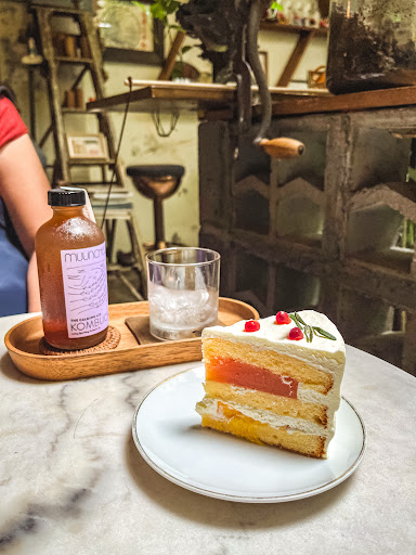Read moreHad the privilege of walking by this little quaint hidden gem when I came to batu pahat who knew this area was so hipster with boutique coffee sprouting nearby. Having no signboard and little description outside of the cafe I was immediately intrigued! Blown away by the sheer amount of antique which was tastefully decorated and emitted a cosy and calm vibe- I ventured deeper into the store then realizing it really was a cafe with yummy cakes! I tried the ice hojicha tea and banana cake! I love the subtle sweetness and moist dense nature of the banana cake! For coffee drinkers they do hand pour coffee hence why things to do take awhile-good things comes to those who are patient. Got talking with the baker- Elaine/ellin(sorry if I butchered your name) and her brother found out the cakes were vegan- love their whole philosophy of sustainability coupled with encouraging people to try out vegan food and to revitalized this area of batu pahat. The mindset of these youngsters is great and inspiring- they mention their vegan cakes took months of research I hope more people will come to know of the duo and their cakes will achieve...