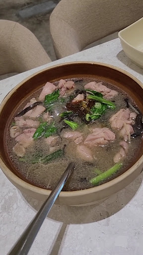 Malay staff was friendly and prompt- gave me recommendations as well as I can’t over order for one- was v helpful. Thank u. I ordered the signature lala soup, a dark noodle and a fermented fried pork belly. I it say, I enjoyed the lala soup v much. The small size order is good for one and the lala were very fresh and plump. The noodles were good but could be less oily. The pork is about dry but was compensated with the heavenly ‘chicken rice’ chill sauce that came with it.