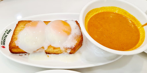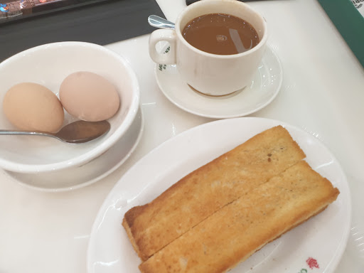 I order their breakfast set (till 1030am I think) The set has a beverage option (coffee/tea), 2 softboil eggs, 1 set of bread with kaya n butter. Rm12.90 (set price)