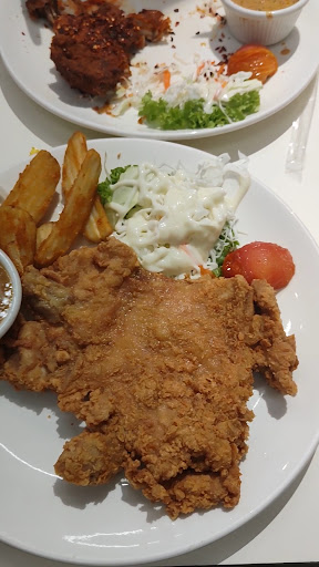 Read moreMy sister brought my family here for a treat. It is my first time here. I was impressed by the quality of the service from the workers, especially the older Chinese woman. I ordered the Hainanese fried chicken chop while the rest had the Volcano chicken chop. We also ordered some mushroom soup and the sweet potato balls ribena longan, iced tea and ribena soda. Food and drinks were nice. The volcano chicken chop was extremely spicy 🌋 🔥 as there were chilli flakes sprinkled EVERYWHERE, literally! On the vegetable sides, on the chicken chop itself, on the plate, basically an explosion of chilli flakes. My wives enjoyed every bit of it but be ready for the consequences 🧻🚻🚽🪠