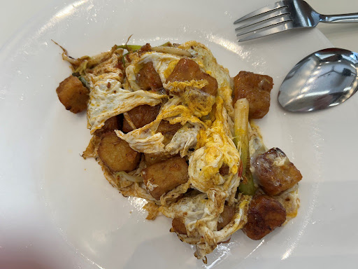 I was here on Wednesday at 1710H. Several menus not available i.e. Nasi Lemak & Mee Rebus. Probably due to its approaching closing time (5:30pm). So I settled for Fried Carrot Cake with Egg (RM9.90) which is one of chef recommendations. Charred at the outside & soft at the inside. Some were actually burnt! (look at attached photos). This caused slight bitter aftertaste found on the wrapped fried egg. Bite sizes are chunkier than most fried carrot cakes I’ve tasted. Distinctive with its own style of fried texture of carrot cake. I wish it’s less over-fried for some of the pieces.