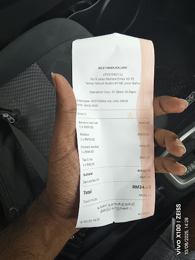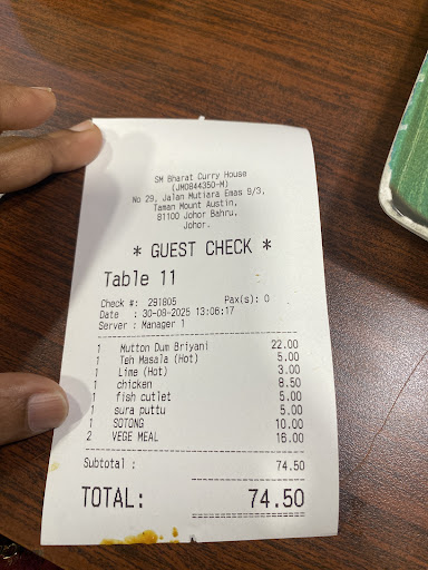 Read moreThe food at this restaurant is, unfortunately, among the worst we've experienced in Johor Bahru. From the vegetables to the rasam, everything was bland and tasteless. No amount of MSG can salvage the flavor. On top of that, the hygiene is clearly lacking. My wife, who rarely experiences issues at other restaurants, had an upset stomach after dining here.
