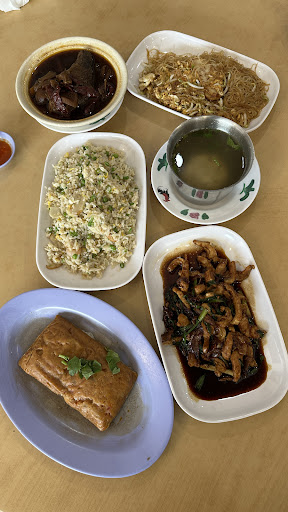 Ordered the fried beehoon, Ginger and scallion pork, stir fry baby sweet potato leaves, shrimp egg omelette, crab meatball soup and the mushroom meatball soup. Food didnt took long to be ready. The food and soup was not bad, personally like the crab and pork meatball. The meatball was quite huge and well seasoned. Veg and the egg was normal,as for the fried beehoon, its not bad but could with more seasoning.