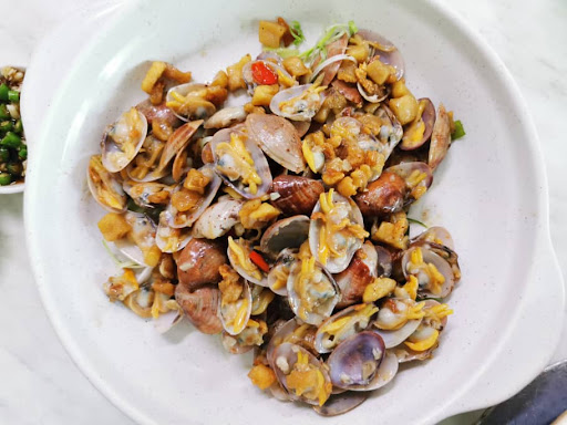 ◾claypot mixed vegetables with tong fun - something not so heavy-flavoured for the rather heavy lunch. ◾stir fried lady fingers with salted egg yolk - crunchy texture covered with savoury salted egg yolk. ◾ham yue fa lam bou aka claypot pork belly with salted fish - I prefer stronger taste for this dish and it didn't disappoint. In fact, it was so good with my bowl of rice. ◾stir fried lala with pork lard - THE REASON I came here.. the sight of fresh clams and pork lards together was a case of foodgasm. The cili padi lent the dish some spicy kick. I enjoyed it... A must order for first timer ◾steamed shark meat (limited availability) with superior soy sauce and minced ginger - full of collagen goodness, and I must say that the flavour hit the right spot for me. ◾Chinese steamed egg topped generously with fried garlic and spring onions - gotta love it when they were generous with fried garlic and spring onions.