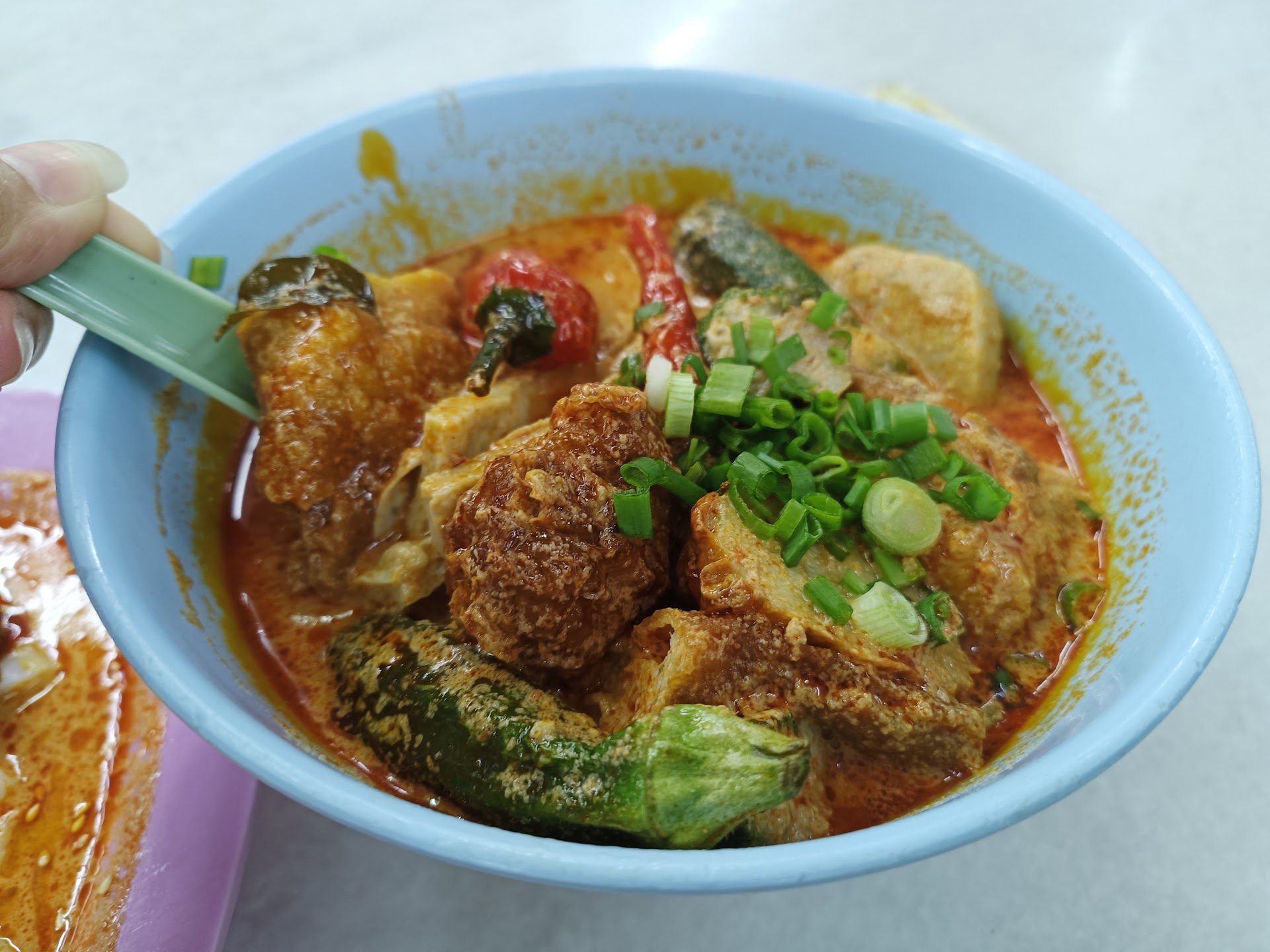 First time here for the curry mee. Ordered a curry beehun and added 4 PCS of yongtaufu. The Curry was above average, flavorful, delicious and good to the last drop. It's not pungent or too spicy. Standard ingredients like fried beancurd, fish ball, half-egg and cockles. Cockles were juicy, fresh and bigger size compare to most other stall I've had tried. Yongtaufu was fresh and well cooked. It looks tasty and mouth-watering. It was a good mix with the curry. Heard the curry sold out fast therefore better be there before 12pm. It was slightly warm inside the restaurant and hope they will improve the air ventilation.