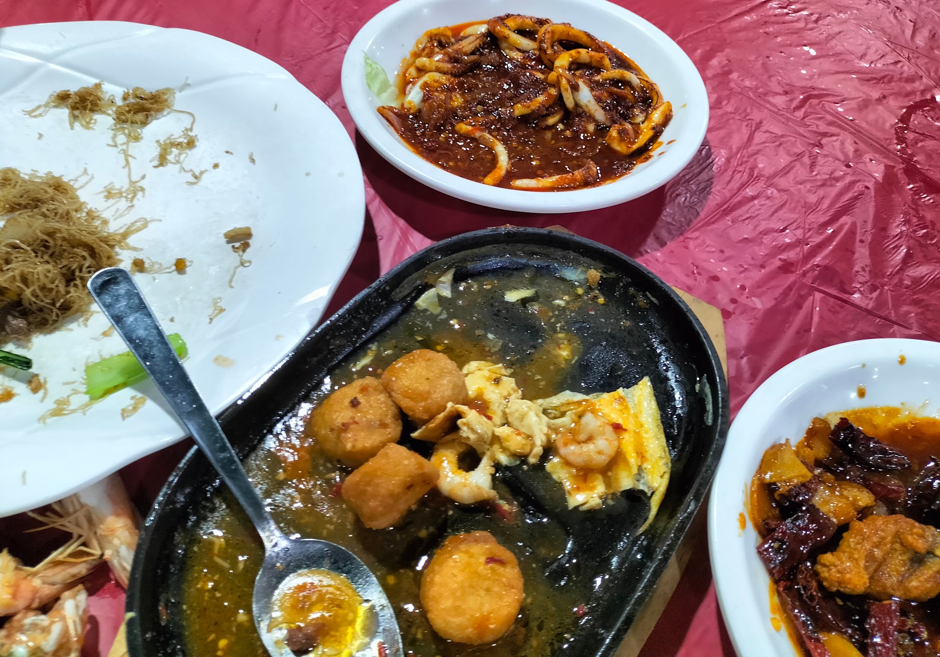 2 x San Low Fried Bee Hoon 1 x Prawns cooked in Salt & Garlic 1 x Chilli Crab with 8 x Fried Mantou 1 x Sambal Lala 1 x Fried Baby Squid 1 x Sweet Potato Leaves 1 x Nabai cooked in Garlic