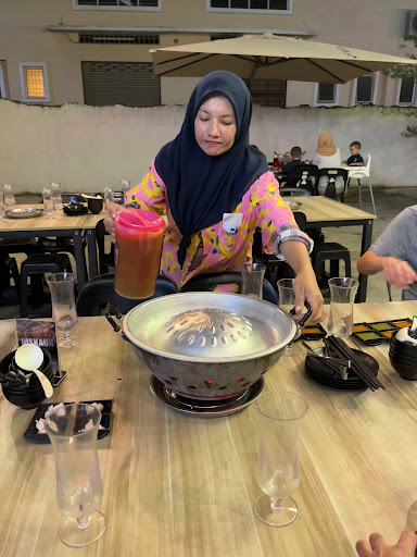 For steamboat with gathering activity, i can recommend this place. Love their steamboat cooking concepts, we cooked on burned charcoal instead of using gas and they dont use butter but use cow fat. Its open space and outside area,so didn’t feel so hot when cooking. Service speed ok, we select our steamboat stuff that we want, give order menu and they bring it to the table. Staffs are friendly and ready to help especially when we asked a lot of stuffs at one time. Their dipping sauce are the best. Taste of their sup and tomyam are good. Their seafood food are really fresh. Recommended to take their luxury steamboat sets because a lot of delicious selection. We totally recommended to take a lot of special buffet set, seafood prawn, flower octopus and salmon cheese (sure satisfied). Price (rm49.90 per adult) are ok with what they serve.