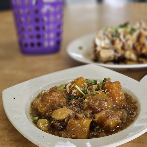 ā¾Fried fish - using red snapper, they de-boned and cut the fish in their own way before coated in light batter and deep fried. If not for the tail of the fish, you would not be able to tell what it is. Just cut off the chunks of meat and savour the fresh, sweet and tender fish which was sweet and savoury as they use combination of Thai sweet chilly sauce, dark soy sauce, mayonnaise and spring onion. Marvellous! ā¾Stir fried shark lip - do look out for available fresh seafood in the chiller. My friend spotted the last plate of this collagen goodness stuff and proceed to order it. They stir fried it and served.. I walloped most of it. ā¾Stuffed ma yao fish - the tedious process of de-boning the fish, minced the meat and then stuffed back the meat before deep fried. Love it but still overshadowed by the fried fish. ā¾Dong po yuk - served in their own sauce which was not too thick (like those we get in Klang Valley) together with beancurd skin, it didn't feel too heavy to go with our meal.