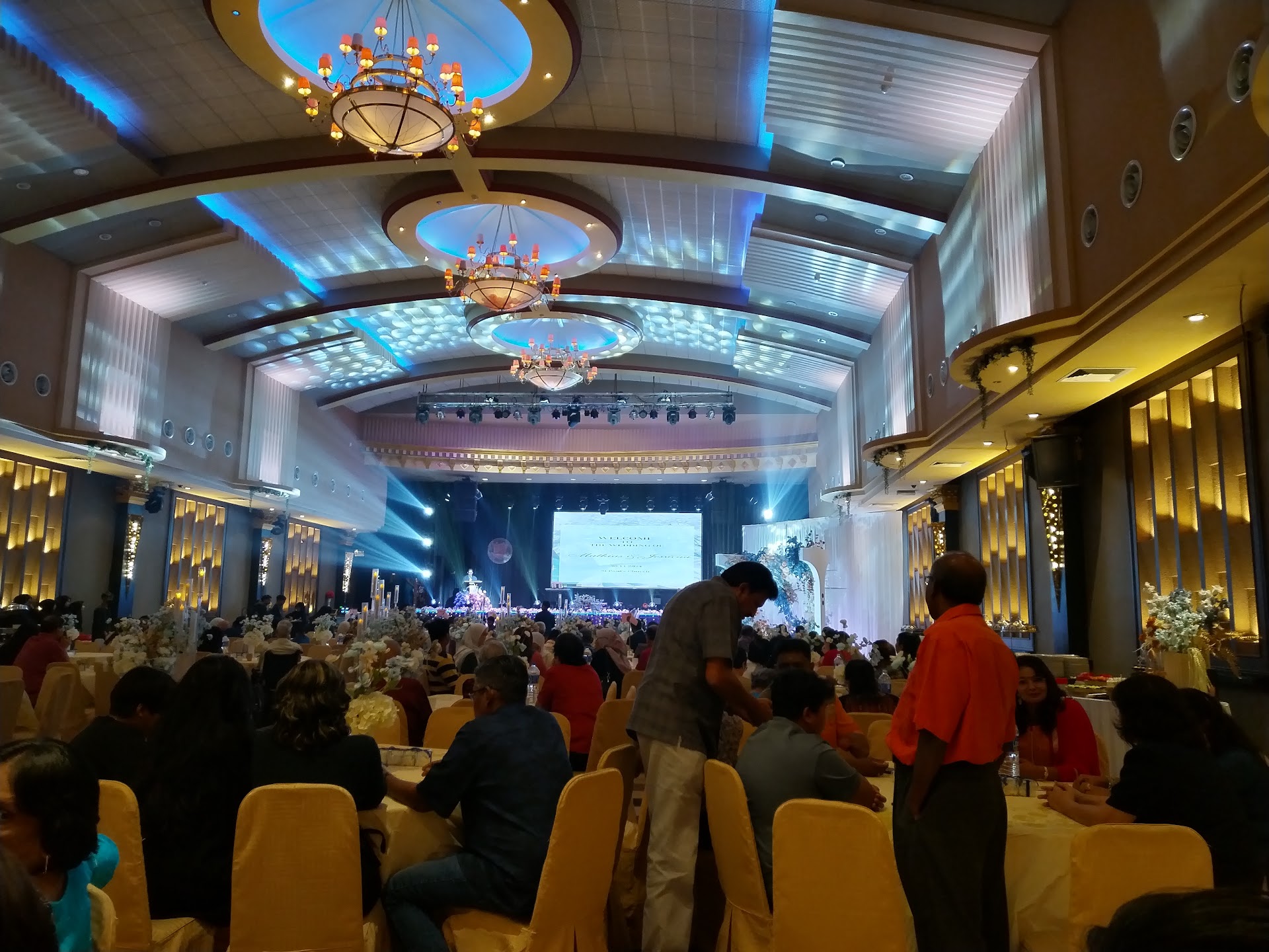 Well for starters the restaurant was booked bec it is big n nice ..booked for my son's wedding reception...but who would expect that we would be shortchanged on the day of the event..Firstly we were given torn n tattered table cloths ...only after we complained the table cloths were changed...Secondly we were not allowed to test or check the PA system n lighting one day prior to the event..after repeated requests..we were still denied to try out the system...leading to the fact that the PA system was blaring n noisy at front tables ..the Sound 'man' was asleep n not helpful...and lightings were not maximised...Thirdly the toilets were wet n slippery with no toilet tissue available...in spite of being told all will be well for the dinner...it was all the same during the dinner. Fourthly the AC was turned off at 10.30 pm...while we were still taking photos with family...What was promised was 4 hours..if event started at 7pm ...then it should be left on till 11 pm..but this was not the case..Very...