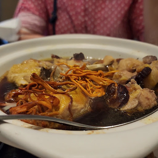 Food: Steam Chicken with Cordycep flower and chicken essence. Serve really hot, really taste, pouring chicken essence in front of you as what expected. Chicken is tender, tasty and delicious. Portion is good.