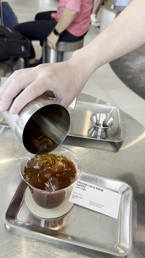 On my recent visit, I decided to try something different โ the Prugna Cold Brew Coffee. This unique brew stood out on the menu, and I was curious to see how it would compare to the more traditional cold brews Iโve tried before. I wasnโt disappointed. The Prugna Cold Brew had a distinct flavor profile, combining the smoothness of cold brew with a subtle fruity note that was both refreshing and intriguing. What made the experience even more special was the personal touch from the staff. When they served the coffee, they thoughtfully nudged me to ask if I wanted to take a video of the pour, which I found to be a nice gesture that shows their attention to customer experience.