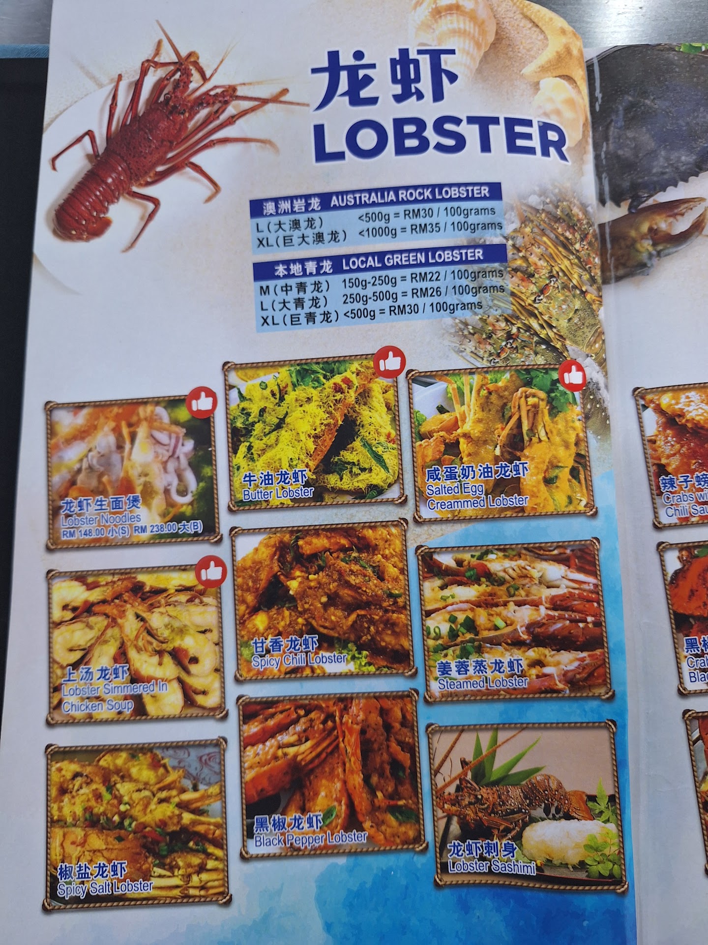 Food: 5 Stars This restaurant offered an array of seafood including some of the rare and unique types. Ordered their signature buttermilk lobsters, chili crabs and kamheong lalas. All sumptuous and well-cooked.