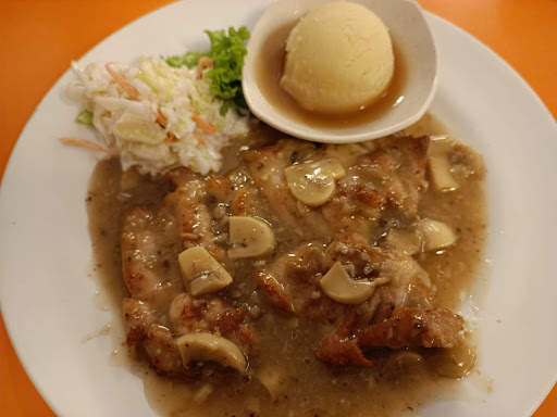 Located at serene and laid-back town of Kota Tinggi. The setting is quite relaxing and seating is relaxing comfortable. The recent visit has sought some price increment on some of their menu items. Our favourite chicken chop dish, i.e. Thai sauce chicken chop still maintain its good taste and generous size. Lots of Thai sauce gravy with pineapple slices on top of the chicken meat. The mash potato has somewhat improved. Tasted a bit of substance now not like before, felt too light, too fluffy and tasteless. Our next favourite chicken chop will be mushroom sauce chicken chop. Generous size and plentiful of mushroom gravy tasty sauce to savour with the well fried meat.