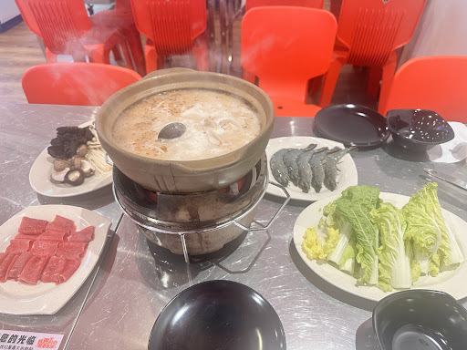 We ordered the Clear Tomyam Clam soup base. Also ordered a variety of ingredients, including pork shoulder meat, chicken meat with egg, and vegetables. We took advantage of a 50 percent discount on small abalone and purchased a plate.