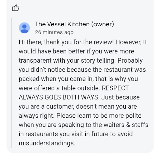 So the Owner replied to my review. Looks like he or she is clearly "Dilutional. there's many customers who have mentioned the same thing about your restaurant! Maybe you should learn to take feedback and run a proper restaurant rather then Lying about the situation to save your ass or review. i mean its too late now since your reviews are getting worse by day. Good luck to your...