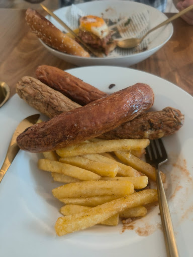 Banger and mash arrived 15 minutes later which is not acceptable, as the burger is getting cold. At 11am on weekend they haven't prepared mash so we accepted fries instead. The sausages were overdone, dry and wrinkled. The dish looks unappetising, colourless and unappealing. There are no garnishes or sauce to complement the dish.