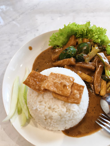 Good ambience. Very polite staff especially the Chinese guy with glasses. I like the fact that they exchange a fried tofu when you put a remark saying No egg and ask if can change to tofu instead. Forgot to check if they do charge the tofu on me but it is much better than those restaurant who didn't even bother to care about the protein intake of vegan. Every meal should have proper nutritional value. When we choose not to have egg and ask for a change, they can just change a slice of tofu or two, or more tempe, to compensate the loss of protein intake. Some lousy stingy restaurants would just omit the egg and told you nth they would offer for you. It is only a 50cents thing (say if it comes in a slice or 2). Food here are nice too. Hopefully they increase the price slightly bit to make the portion a little bit bigger too. Highly recommended...
