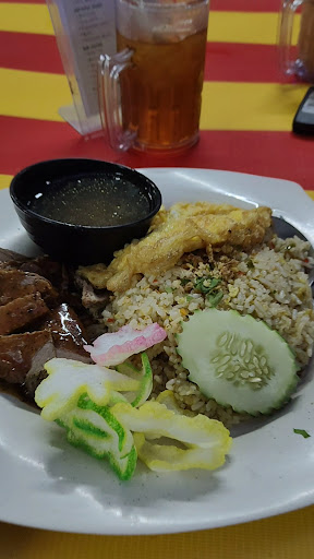 Nasi goreng 60an. Sedap portion memuaskan, ada daging, telur goreng & sos black pepper. Nasi style nasi goreng kampung. Daging rebus slice siram dgn sos black pepper yg daging ada rasa pelik sikit mcm masam² x kena dgn nasi goreng