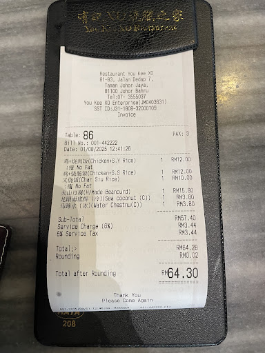 Read moreWent to this restaurant on sunday evening 830. Surprised to see the whole shop workers are foreign talents. Sat down and was greeted by one workers, where he explained the remaining menu in broken english that is difficult to be understood. We wanted to try the famous roast duck, so we ordered takeaway of this “3-treasures combo”. Was informed that charsiew was sold out, so i asked if with the same price of sgd38.00, can i get the replacement portion to roast duck. The worker said okay, but when we were handed the bill, it was charged as sgd48.00. We were amazed, but we thinking that it is a waste of time to argue with them especially in english. We sucked it up, but when we received the packed take-away, again we are astonished with what sgd48.00 is worth ( see the picture). We are totally disappointed, firstly with this restaurant where the front-desk workers and even those chopping the roasts are foreign talents, secondly with the disappointing amount. We understand it is late hour, but come-on, that portion is overpriced. Will...