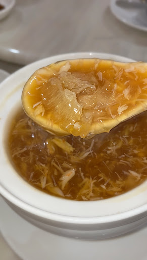 🌟Braised Shark Fins Gravy Soup, that was soulfully satisfying, rich umami flavour in every sip. 🌟Roasted Shatin Pigeon, looks small but is meaty, juicy with slight gaminess. 🌟Garlic Steamed Fresh Jumbo Scallop, that is sweet, and succulent garnished with aromatic fried garlics. 🌟Sweet & Spicy Sea Prawn, can’t get any better than that, succulent king prawn in savoury sauce. 🌟Hong Kong Kailan cooked in two styles, the stem blanched and lightly seasoned with soy sauce while the leaves shredded, fried crisp garnished with aromatic crisp white bait. 🌟Braised Noodles with assorted mushrooms topped with crispy pork lards. 🌟Stir fried Hong Kong Kailan, black fungus, gojiberry served in delicious gingery sauce. 🌟Red Bean Pancake, can’t get more authentic than this, crisp exterior with aromatic sesame seeds, sandwiched with slightly sweet red bean paste, so decadent. 🌟Osmanthus Jelly, the best I have eaten, refreshing, wobbly texture with delicate floral finish. The ambiance is elegant with attentive service.