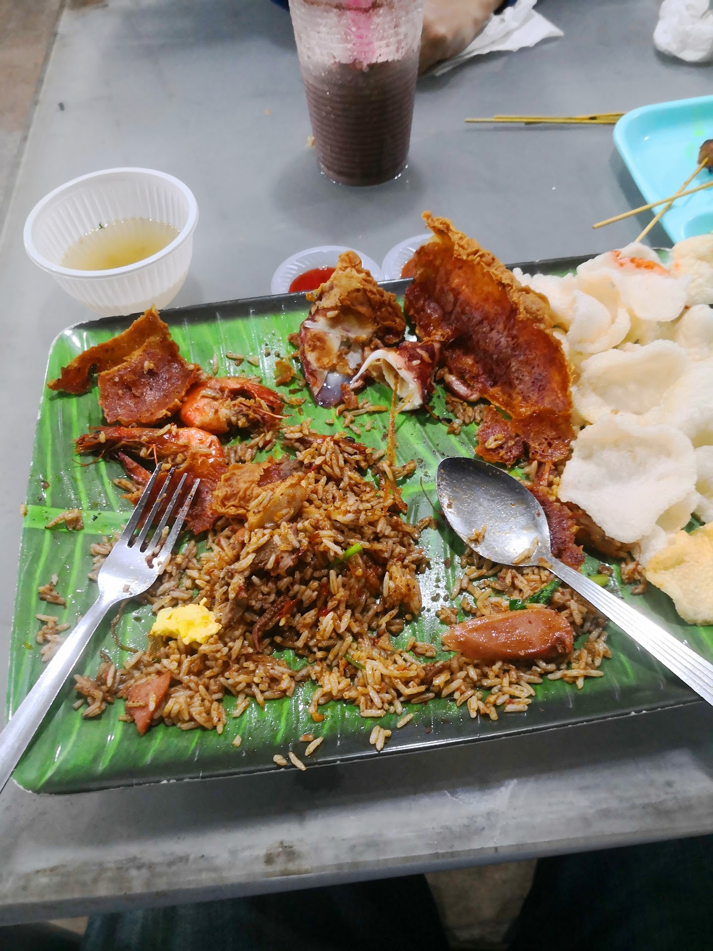 Heard about 'Food Valet' before. It is located somewhere after Kajang Toll and have to make a U-Turn before approaching Kajang Stadium. We booked a seat for 5 through a friend before leaving. The weather was bad. It rained heavily and traffic flow was slow than norm. We arrived slightly after 7pm and still drizzled. Some of the partons were greeted by RELA personnel, a good move by the management but not enough umbrellas for us😁. Upon arrival my daughters ordered theirs. I ordered mine but some of the fav food were off the menu as the outlets operated before lunch hour. Finally our food arrived after 20-30mins wait. We had Nasi Goreng Gila (big plates fried rice with prawns), Fish & Chips, Mee Kari, Char Koay Teow and Fried Koay Teow, Laksa and Burger Cheese Selambak! Char & Fried Koay Teow was cosiderably good, Nasi Goreng Gila was tasty but spicy. Laksa and Mee Kari was not to our taste. Finger sweet potatoes that comes with Fish & Chip was nice....