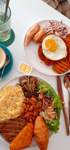 Read moreFirst of all, the staff are very helpful and attentive. We ordered the cream of mushroom, mushroom steak breakie and a chicken maryland. The soup is definitely on point. You'll get the mushroom chunk in every spoon of it. And the garlic bread is very crunchy. Dipping it in the soup is just right. The portion for mushroom steak breakie is huge, at least for me. Very filling. The mini croissant served alongside is warm too. They also serve a sunny side up on the chicken maryland. Caramel latte is yum, slight sweet but it's expected. Only thing is that the apple soda isn't that gassy like a soda drink. Oh lots of vegan friendly food selection too. Very comfy cafe. Will...