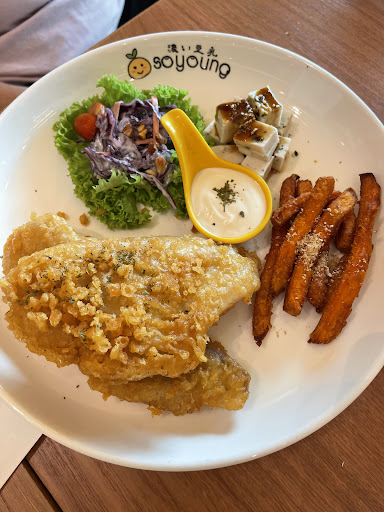 Read moreOrdered 3 main course (spagheti, noodle, fish & chip), 1 cake 1 tofu fa, take the soya set which is 2 big 2 small bottle. Used to drink their original soya but this time we try out 4 different taste soya (belgium chocolate, coffee, oat and earl grey). Gotta said still the original taste is better. not a fans for other flavors. The foods are pretty delicious and i love my noodle very much!