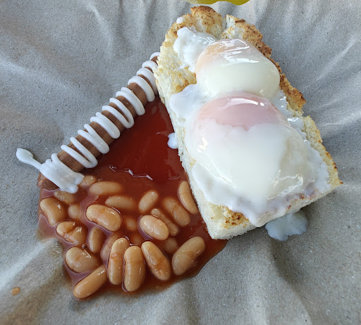 Oletto comes as omellete with lots of shallots topped with sliced cheese and wrapped with roti jala served with curry. I loved it and the curry taste really good when eat with oletto. Breakfast set consists of 1 sausage, 1 pc white bread, baked beans, English scrambled eggs, 1pc hashbrown with chilli sauce and mayonnaise. My husband and I ordered iced kopi bakar and kopi Kedah. I preferred the hint of smoked bean in kopi bakar while my husband love the creamy bitter taste of kopi Kedah.