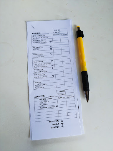 Once you seat, you'll be given 2 pcs of order chit. 1 for food and 1 for beverages. Quite a good system for a stall with good recomendation in the chit sheet, you may find few icons. The price also quite reasonable with Kedahan people. With the help of pictures in the menu given and staff's explanation, you'll make a good choice. We choose Oletto, half-boiled eggs and breakfast set.