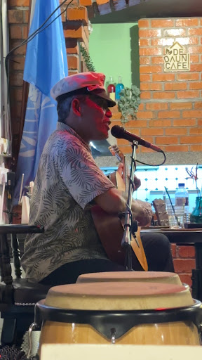 I don't recommend to go. The atmosphere's a bit cringe. There is a tired guy just singing, poorly, trying to create a good vibe. The music is too loud. His voice is shaky.