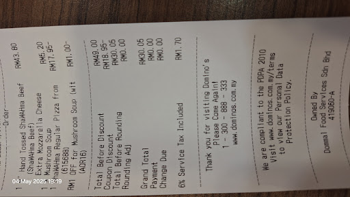 To make things worse, I told the cashier that I wanted to banana kaya pizza, but she didn’t include it in the order. I clearly mentioned it at the counter, and yet it wasn’t added to the receipt or prepared. That’s really frustrating.