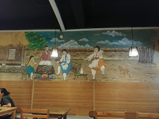 Ambience wise, the restaurant is decorated with traditional Korean art pieces and mural paintings of traditional rural life in Korea - one of which features a dancing peasant lady resembling the Ajumma from the kitchen. The wife and I suspect that she is actually an immortal who has been alive for centuries perfecting her craft, moving her restaurant to different lands per human lifetime to avoid discovery.