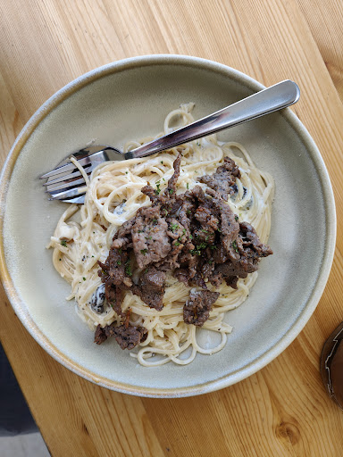 Now, let’s talk about the food—the Alfredo Spaghetti with Grilled Beef was simply outstanding! The sauce was rich and creamy, and the beef was grilled to perfection—tender and flavorful. Easily one of the best pasta dishes I’ve had in a long time. Pairing that with their mocha was the perfect choice! The coffee was smooth, with just the right balance of chocolate and espresso, making it a delightful treat.