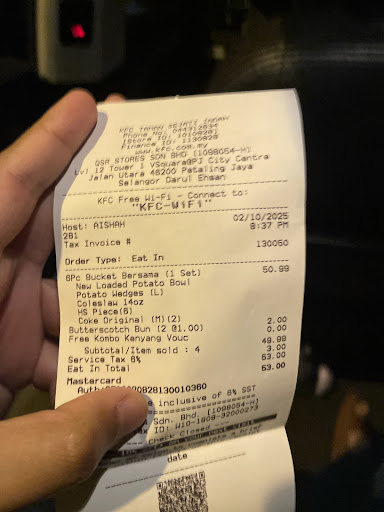 Read moreMiss Aishah’s customer service was excellent! She’s very welcoming and attentive to customer’s needs. Thank you for giving us a great experience dining with KFC. Please give her the raise that she deserves. If I were to open a F&B business I will definitely hired her. Food wise original chicken was delightful very tasty and salty. Meanwhile spicy chicken is very crunchy. Splendid! Once again thank you Miss Aishah! She even greet us during...