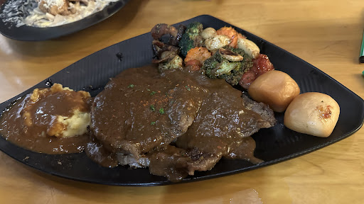 We’re surprised to see the gravy have been put on the rib eye (banjir) and not being put aside making the steak so soggy. The gravy was not just on the steak but also on the veggies. Yuck. Told the waiter about it and they said gravy curah on top of the steak is their signature, and if nak serve separately then need to inform. Doesn’t make any sense to me as the cafe need to understand that they are the one who display in the menu (as per photo) that the sauce is served separately, and there is no notice in the menu saying that the customer need to request if want otherwise.