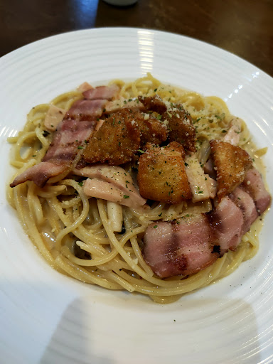 Bacon and ham Carbonara also highly recommended. If can add on egg yolk will become more creamy.