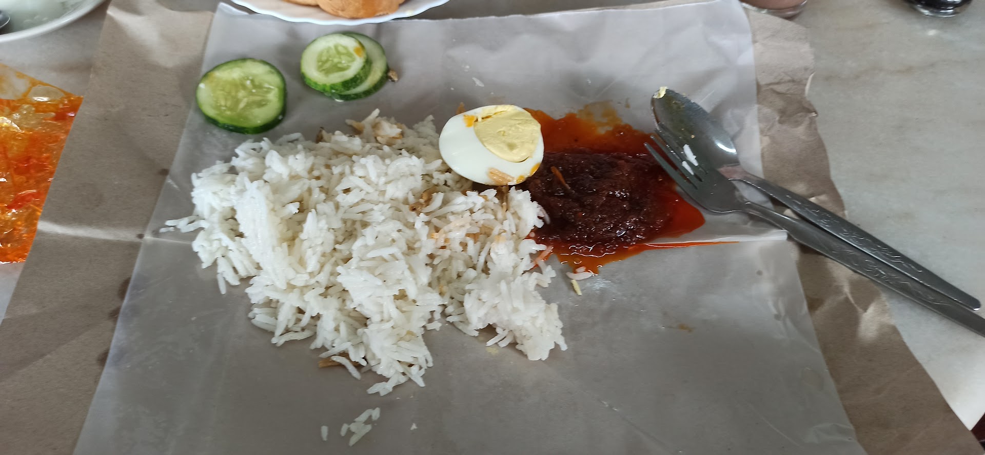 ◾Nasi lemak bungkus at RM3 was a simple yet effective national dish to satiate the hunger of sambal-loving prince in the family. ◾Nasi Dagang Kerutuk - just gotta mix the white rice with the rich coconut milk-based curry and devour that tender beef. ◾Nasi Tumpang marked my first experience with this traditional Kelantanese dish where the rice with different layers of viands shaped into a cone and wrapped in a banana leaf to retain its fragrance. Texture-wise like ketupat where the rice was squeezed tightly to form the cone shape. ◾Nasi Kerabu Golok was good and this time with the blue-tinged rice, but flavour-wise yesterday version was better. ◾Nasi Dagang Ikan - they also have ayam but what's nasi dagang without the quintessential ikan tongkol? Good flavour as it was rich spicy and aromatic but stingy on the gravy. ◾Toast bread with butter and kaya - the bread was nicely grilled and had the nice charred aroma. Came with butter and yellowish kaya on the side which were very delicious by the way. ◾Steamed egg - perfectly wobbly. ◾Drinks were considered passable but my benchmark is very high on this.