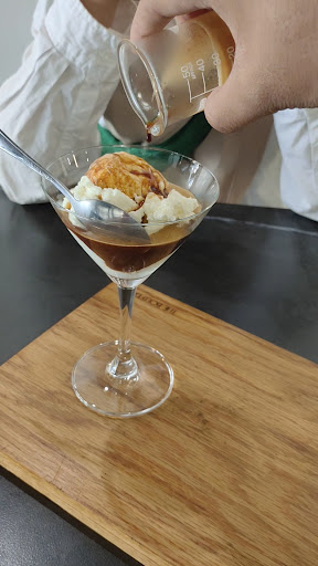 The affogato is great, it'll be sour because it's known that coffee acidity is increased when cold.