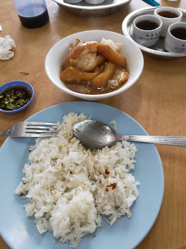Ordered pork knuckle with high expectation due to past experience. It turned out to be a slight disappointment this time. It was slightly above average. There was no melt-in-the-mouth sensation, far from it actually. The lean meat portion was acceptable but the fatty part was a little tough to chew on. Taste was as before, very good with richly flavoured soup, or rather, gravy. It went well with the fragrant rice.