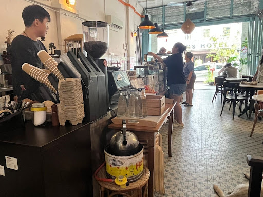 Read moreThis little cafe is tucked away at a side strew t near to the Klang main railway station amongst lots of Indian’s shop. We heard the coffee is good there so we decided to take a trip down to Klang. The ceiling is very high so make the place feels spacious. The cafe deco is a bit of retro with the 60s style tiles on the wall. The furnitures are pretty old too. Plenty of plants lying around the cafe made it cosy. A stray dog was lying on the floor of the cafe waiting for the patrons to throw him some food. As we were there after a heavy lunch, we decided to skip the cakes. We ordered the pine house which blended pineapple and coconut juice with Lime and a tint of salt which was refreshing for a warm sunny days. My friend’s cold pressed coffee was very strong. Another one ordered the coconut cloud which turned out pretty good too! I must say the menu is pretty extensive with lots of choices ranging from Chinese noodles, western foods and varieties of cakes and bread. I wouldn’t mind coming back to eat brunch some days. Good place to sit here sipping a cold drink to watch...