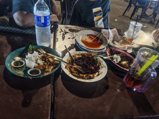 My first time here. Plenty of seats available, indoor & outdoor seating. The place is located at 2 cornerlot shops, which gives the ample parking & seating space. Food was good & big portioned. So pls plan your meals well. I ordered the Hokkien Mee (RM8) which can easily feed 2 adults, has plenty of meat slices in it & tasty. We also had Chilli Chicken set (RM10) which came with rice, the chicken, fried egg & some salad. The wild boar in soy sauce with rice (RM16) from 1 of the Indian stall in the shop was so good, tender meat & well seasoned. The LorBak is a must try. We also had popcorn chicken & cheesy wedges. The servers were not too friendly when we decided to change our table as at first we were seated a bit near to the stinky tofu stall (no offence to the tofu lovers, it's just not my preference) Couldn't stand the smell. They took orders while we were walking towards another table. And no smile at all. Drinks comes in 2 sizes, big & small. So it also can be shared by 2 people. Overall, am happy with the place & definitely...