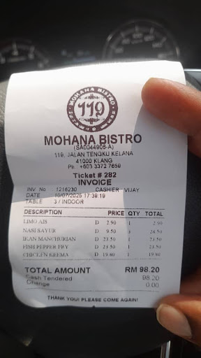 Read moreMohana Bistro is a hidden gem in Tengku Klang, and hands down, one of the finest dining experiences in the area! Each dish is a masterpiece – from the crispy, flavorful thosai to the rich and aromatic mutton fried rice, and let’s not forget the heavenly paal appam. Every bite is a culinary delight, and it’s no wonder the place is always bustling with eager diners.