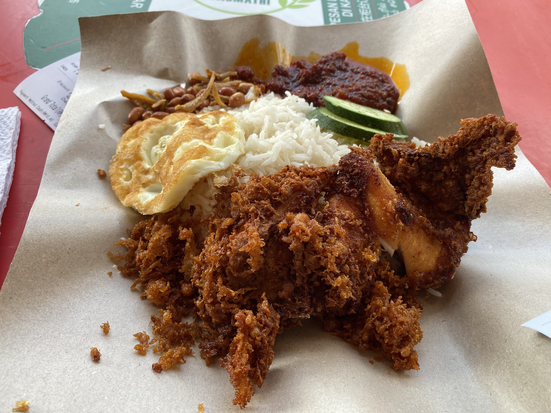 So, firstly parking no need scared alot of slots to park at night. ๐๐๐ Then we came to the counter to order, very modern, like a fast food chain. ๐ง๐งโโ๏ธ๐ง Numbers on our receipt was mentioned with their call outs with their mic, very interesting!! ๐โโ๏ธ๐ค๐ข Self service with trays, we brought our beautiful plates to the table. ๐ฝ๏ธ๐ฝ๏ธ๐ฝ๏ธ Decent amount of basmathi rice, the spoon of this rice will just kiss your taste buds gently when its slight basmathi and coconut milk umami hits. ๐๐ฅฅ๐ Paired with their sambal with balanced sweetness, spiciness, & saltiness. MMMM โ๏ธโ๏ธโ๏ธ And when the fried chicken and its bits comes in with the rice and sambal FUIYO i tell you, you need to try this man. ๐๐๐ Of course they didnโt forget the traditional kacang, ikan bilis and timun. ๐ฅ๐ฅ๐ RM 10.80 for one plate to this date, considering its large rice portion. Very versatile price. ๐ท๏ธ๐ท๏ธ๐ต Environmentally, i like the vibes. โ๏ธโ๏ธ๐ Perfect vibes to play your mobile legends or your wang zhe with your mamak mates when itโs not raining lah. ๐ฎ๐ฎ๐ฎ All in all, 10/10 a very gentle plate of nasi lemak, no overpowering saltiness, spiciness nor sweetness. ๐๐๐
